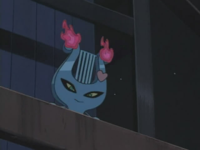 Subaru awakens during the night, notices War-Rock missing, and finds the markings of a radio wave battle nearby. He sneaks out, and hurries down there to see what's up. War-Rock makes quick work of Harp, who admits herself that she was no match for him. But she dashes behind a signal tower and Denpa-Henkans into Harp Note, making her strong enough to take War-Rock down a few pegs. After playing him a couple of Shock Note attacks, Subaru arrives on the scene, and Harp Note's excited to see a new player for the game. But as she's about to attack, the Satellite Police show up, forcing her to pack up her amps and leave. Detective Goyoda is none too happy to see Subaru at the site of yet another colossal radio wave reading.