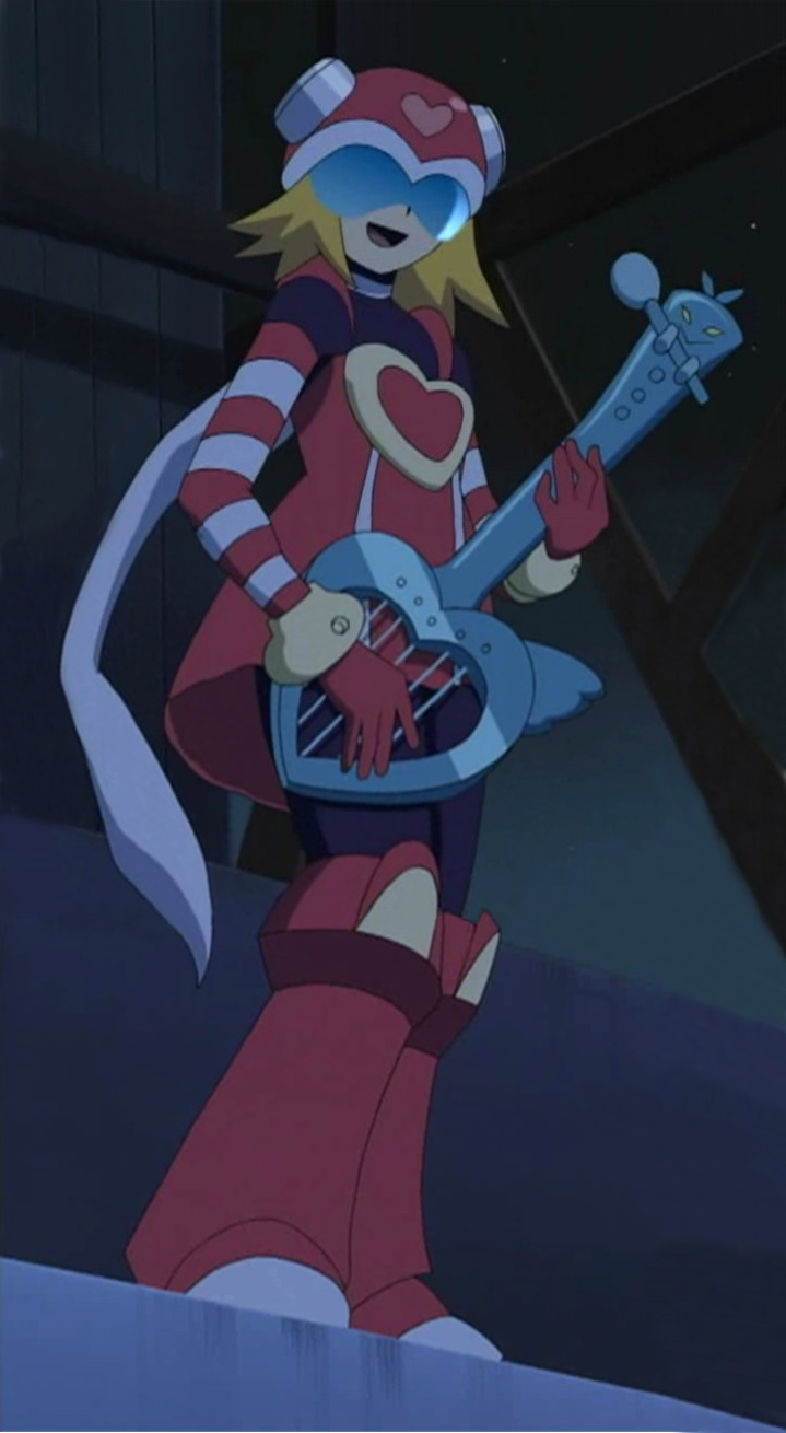 That night, War-Rock hears the same weird music again. He leaves his Transer and heads toward where the signal's coming from, stumbling onto another familiar FM-ian face. Her name is Harp, and she has three missions on Earth. One, retrieve the Andromeda Key; two, destroy the humans; and three, assassinate the traitor War-Rock. War-Rock disapproves of the checklist, and decides to take Harp on in combat.