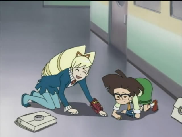 Later that day, Subaru heads out of the school planetarium so he can meet up with Mr. Amachi at Amaken. On the way, he notices Luna, Gonta and Kizamaro acting strangely while they look for Luna's contact lenses. He's in a hurry, and a little weirded out, so he passes right by.