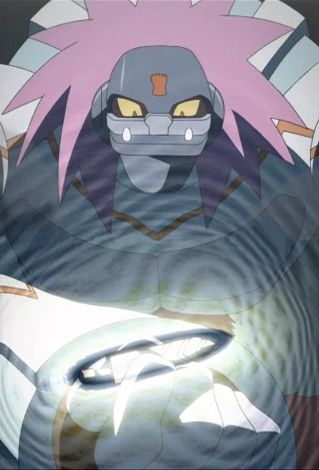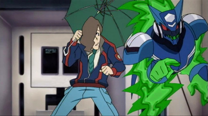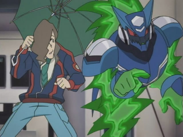 While Luna, Gonta and Kizamaro are excited to see the ancient relic on display there, Subaru also wants to check out why Denpa Viruses were swarming around the place. War-Rock notices a strange light radiating from inside, so Subaru investigates. The relic, known as the Sword of Berserk, is ripe with Denpa waves, yet they can't figure out why. Suddenly, the museum's under attack, and Subaru Denpa-Henkans to see what's up. He meets another Denpa-Human, a giant ape-like creature, who swipes the Sword of Berserk and runs off. This new creature is surprised by yet another Denpa-Human, dressed in a cape and top hat. He too seeks the Sword of Berserk, and attacks the other for it. The Sword of Berserk falls off of the Wave Road, and Rockman along with the other two all jump for it. War-Rock grabs it in his mouth, and it somehow slides all the way down his throat and vanishes. With the relic gone and the Satellite Police on their way, the strange newcomers take their leave, while Subaru thinks of what to do to retrieve the treasure.
