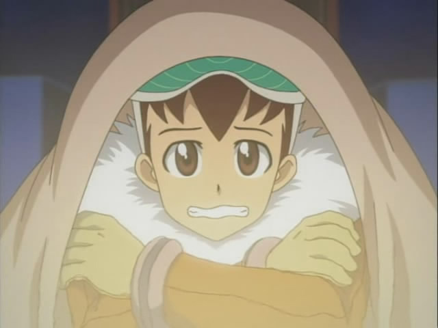 After the battle, the village elder tells Subaru all about their legend. They themselves are not descendants of the Mu people, but they do know about the treasure left behind. There is a cave hidden within the vast Himanara mountain range, where those descendants of the Mu civilization migrated. It's said that those who follow the waving road will reach the cave. Subaru figures that they were talking about the Wave Road, so he takes off and Denpa-Henkans to find the right Wave Road.