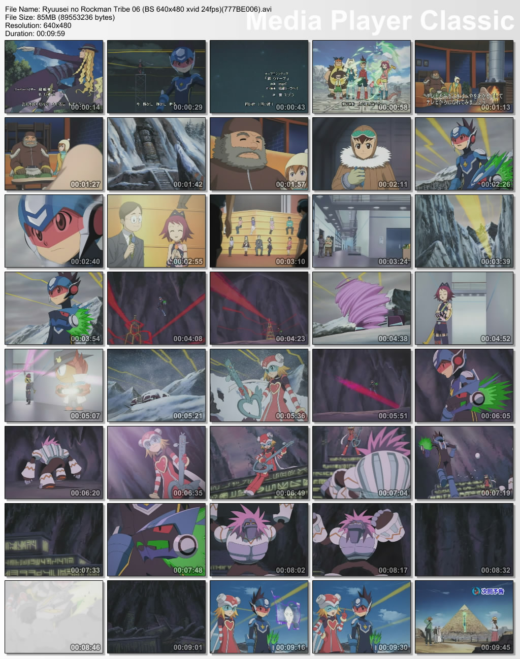 While Misora's recording the TV show, she goes behind the scenes to get a break and go help Rockman. He informs her that the Wave Roads are getting weaker, and he's found a mountain that War-Rock's Sword of Berserk is reacting to, so they go to check it out. Cancer Bubble arrives with the machine Cygnus invented which gave the FM-ians their human appearances, and makes a perfect clone of Misora so she can leave.